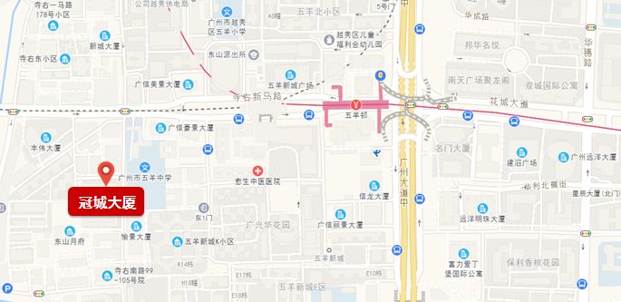 冠城大厦位于五羊中学旁,距离五羊邨地铁站5分钟左右,楼下即是各种临街商铺。