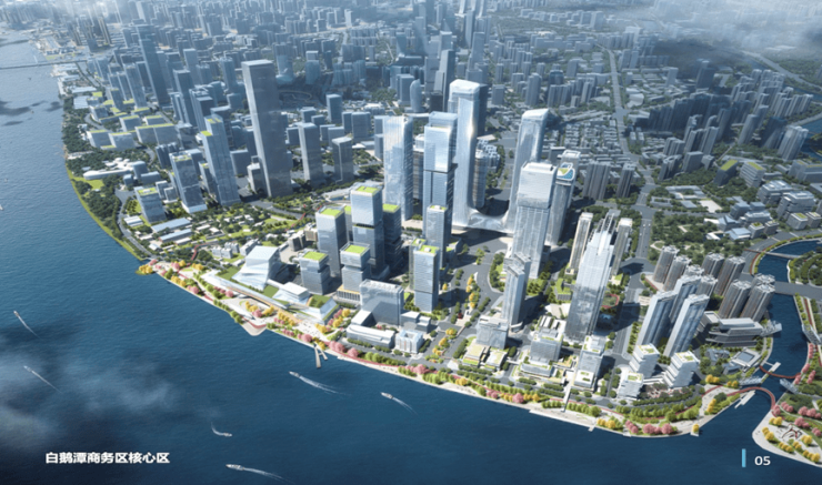 目前,商务区内,聚焦了高端服务、现代商贸等重点产业,已与太古地产、湖南建投、中信泰富等企业签订合作协议,推动白鹅潭大湾区艺术中心、花地湾、白鹅潭一号总部、广建白鹅潭地块等多个重点项目的建设,未来发展潜力无限。