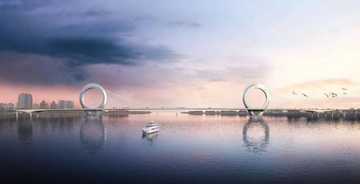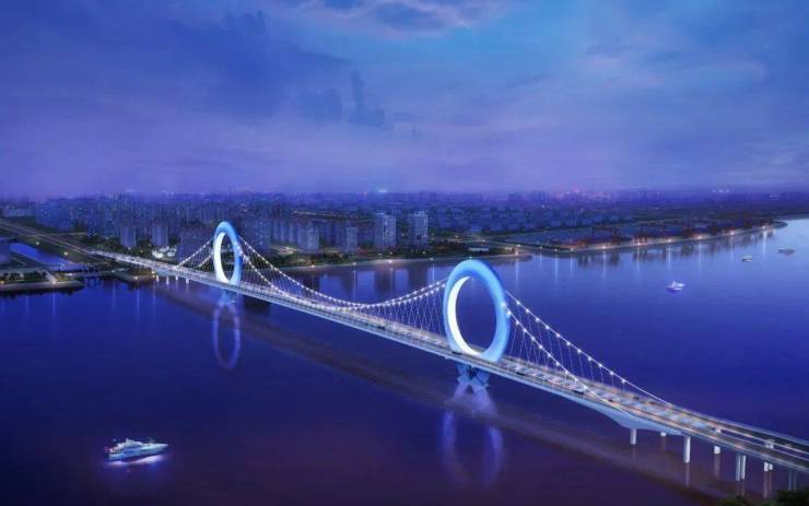 记者了解到,该方案为双椭圆桥塔、主跨608米的自锚式悬索桥,全长约1150米,是当今世界较大跨径的自锚式悬索桥。