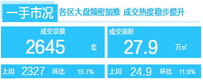 本周全市一手住宅网签2645宗,环比上涨13.7%。