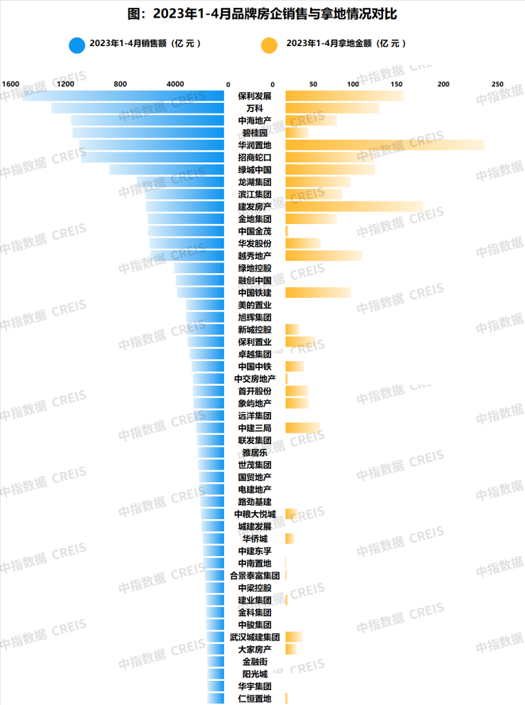 与此同时,尽管今年以来民营企业拿地积极性提升,活跃在多个城市的土拍现场,甚至成为部分城市拿地的绝对主力,但总体而言,国央企仍是土拍市场的主力。据中指研究院数据,今年前4月拿地金额TOP10中只有2家是民企,TOP20中仅有6家民企。