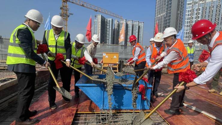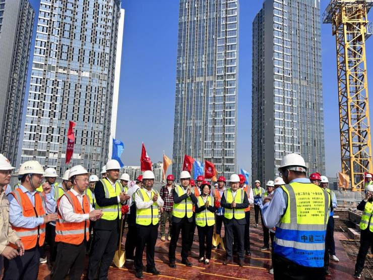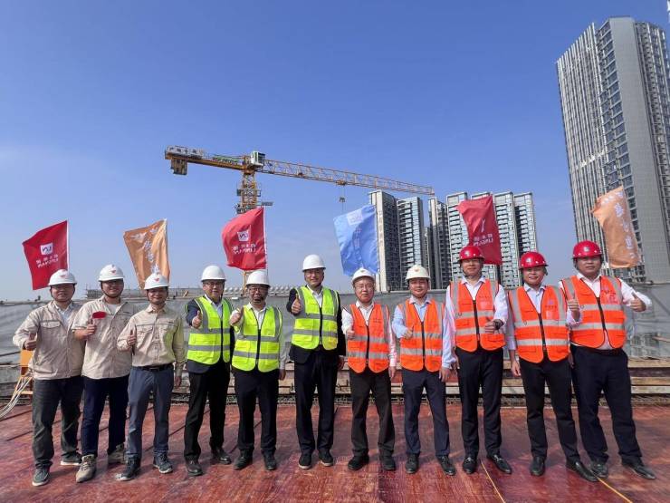参与封顶仪式的领导和嘉宾们还一起在楼顶合影留念,共同庆祝这个历史性的重大时刻。