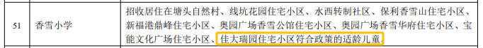 值得一提的是,根据《2025年黄埔区公办小学招生地段划分表》文件,佳大瑞园正在省一级公立学校香雪小学2025年招生范围。也就是说,这意味着未来佳大瑞园业主的小孩,也有机会入读香雪小学。(2025年黄埔区招生细则请查阅《穗埔教〔2025〕202号关于印发《广州市黄埔区2025年义务教育学校招生工作实施细则》的通知》文件,后续招生规则请以当年教育局文件为准)