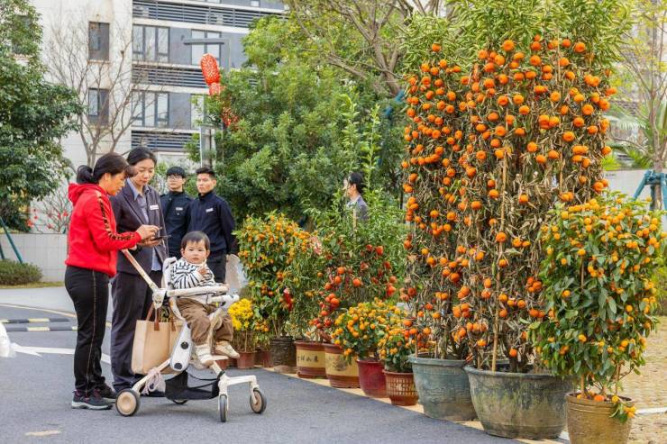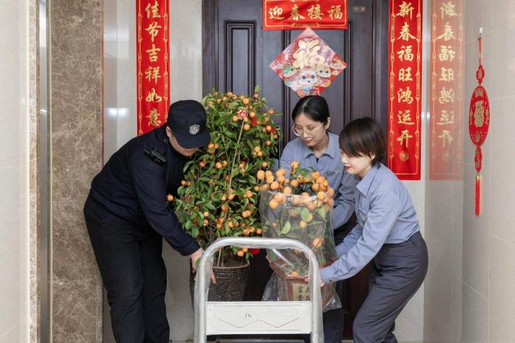 2024年2月14日下午,位于广州市黄埔区的龙湖·揽境小区内,社区运营官小梁轻敲业主家门:“陈阿姨,我们来帮您收年桔啦!”门一开,高大的年桔盆栽占满玄关,地板上还散落着一些泥土。小梁连忙招呼同事上前帮忙,俩人小心地将花盆抬上了拖车,然后将屋内散落的碎土和落叶清扫干净。“正愁搬不动,你们真是解了燃眉之急!”陈阿姨连声道谢。同一时间,在附近不远的金融街融穗御府小区,四名龙湖智创生活工作人员接到人在外地的业主预约,正将业主家中的年桔、年花装箱,视频连线那头的老人传来感慨:“多亏有你们守护这个‘家’。”