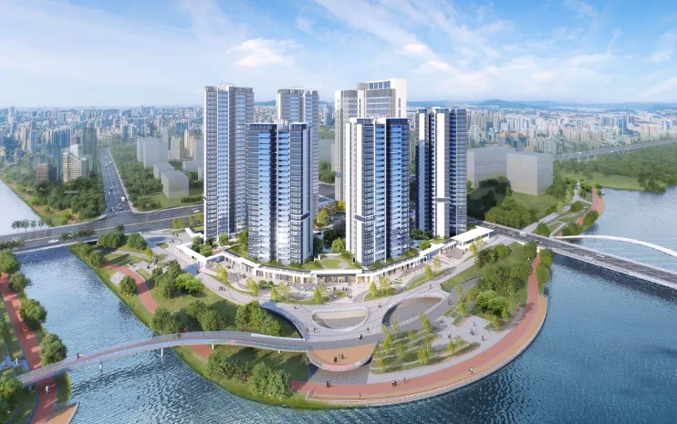从效果图上来看,整个项目滨水而建,旁边的凤凰二桥恰到好处的与项目连贯。血拼哥觉得还是非常具有意境美的,多po几张图大家感受下。