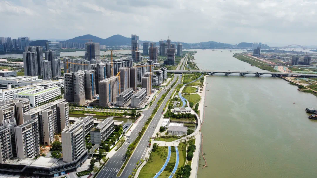 尤其是在横沥岛看过去,灵山岛商务区的商务氛围感已经出来了。