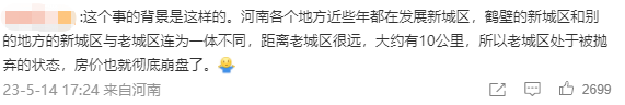 其中,对于事件的真实性,不少当地网友表示确认,提出目前河南各个地方大力发展新城区,鹤壁的新/老城区两者相距甚远,老城区基本处于被抛弃的状态。