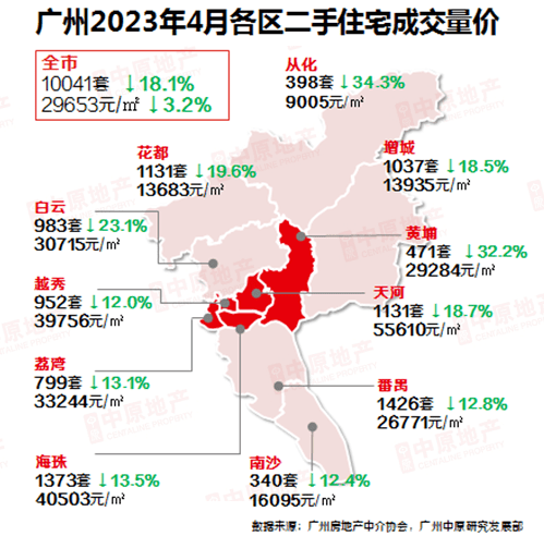 依据广州中原研究发展部统计数据,目前广州整体均价为29653元/㎡,11区中,海珠最高,达40503元/㎡,从化最低,仅9005元/㎡。