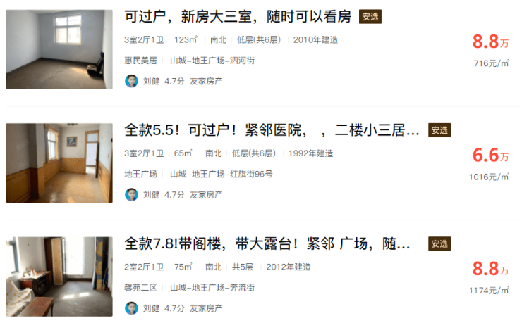二手房方面,鹤山、山城虽不见上述新闻中提及的总价低至几千块的房子,但房价是确实低。