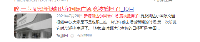有消息称,凯达尔枢纽国际广场已经被抵押,其建设也被按下暂停键。