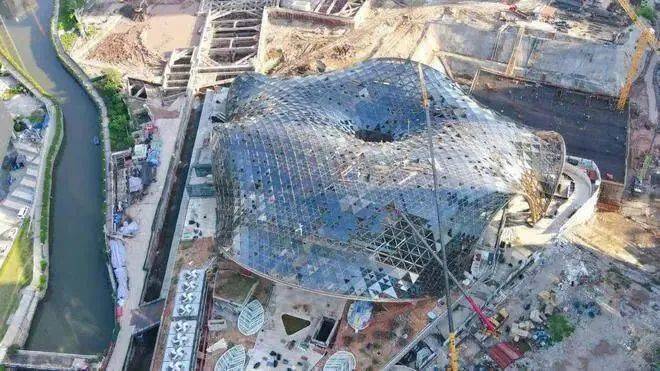 ▲ 金融城广场建设现场,“锦鲤馔玉”外观造型初现。