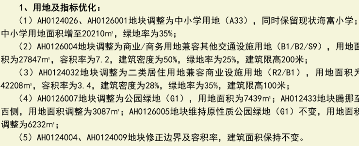 除商业、居住用地外,还规划有中小学用地、公园绿地等规划,其中中小学用地用地面积扩大至2.02万㎡。
