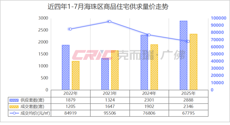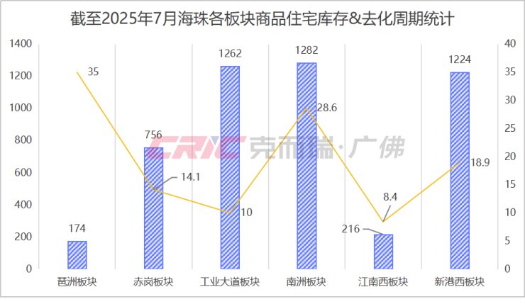 库存方面,克而瑞数据监测显示,截至2025年7月末海珠区商品住宅库存4914套,去化周期15.9个月,优于全市平均水平。