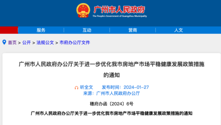 1月27日,广州政府发布了进一步优化房地产市场平稳健康发展政策措施,提出优化调整限购政策。