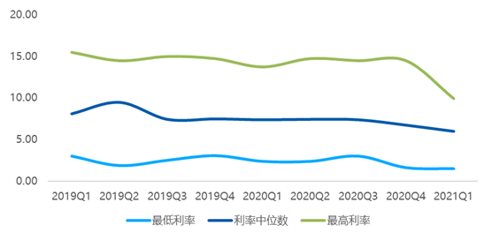 2019年至今季度房企境外债券融资票面利率 数据来源:Wind,贝壳研究院整理