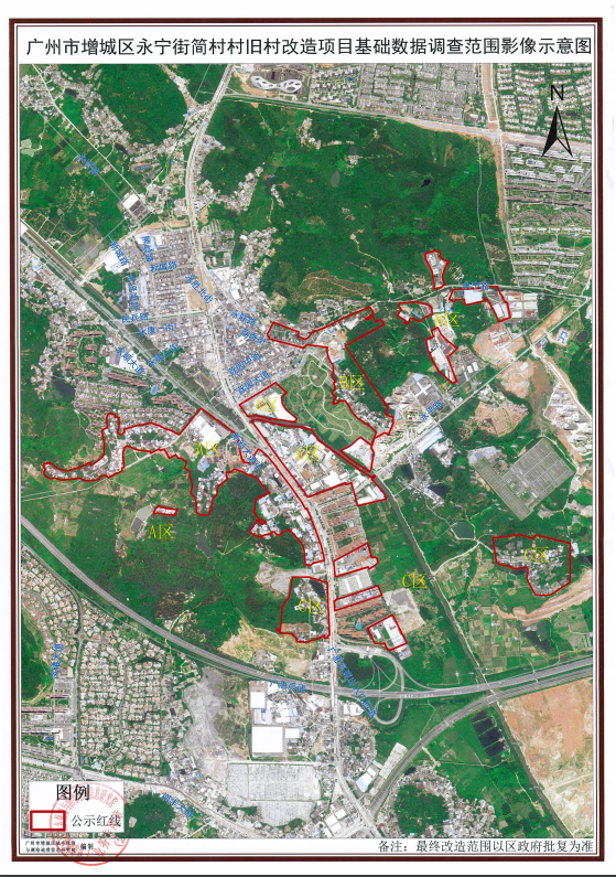 公示的内容包括了《广州市增城区永宁街简村村旧村改造项目基础数据调查范围基础数据说明》 《广州市增城区永宁街简村村旧村改造项目基础数据调查范围示意图(A、B、C区)》 《广州市增城区永宁街简村村旧村改造项目基础数据调查范围房屋一览表》 《广州市增城区永宁街简村村旧村改造项目基础数据调查范围影像示意图》。