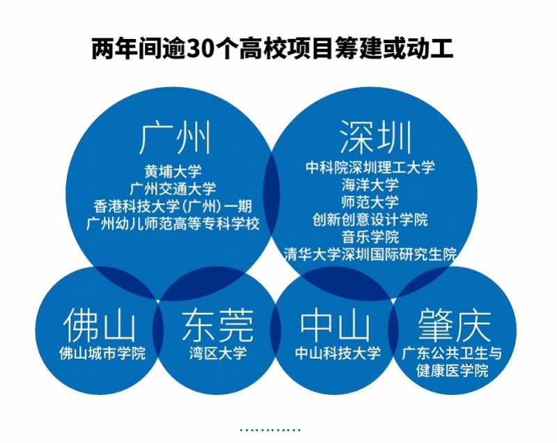 据南都记者初步统计,在《粤港澳大湾区发展规划纲要》发布的两年时间内,包括新建高校、新建大学校区、研究生院在内,超过30个粤港澳大湾区高等教育单位不断推进项目建设。