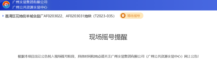荔湾羊城食品厂地块开拍,在极短时间内地块便被14轮竞拍拍到触顶,送去摇号。