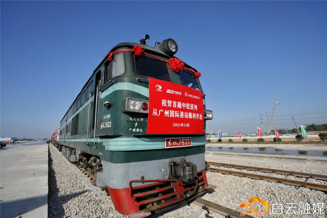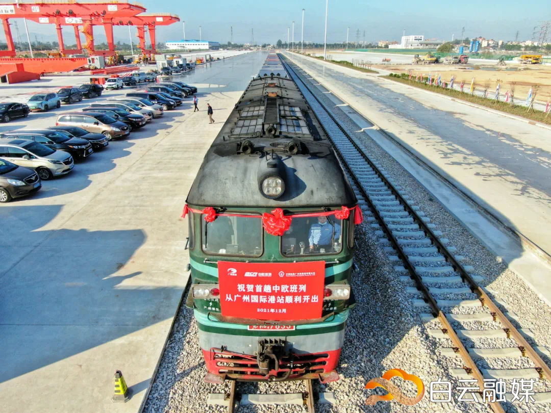 12月31日16点26分,伴随着嘹亮的火车汽笛声,广州国际港首趟中欧班列从港口徐徐开出,预计15天后抵达波兰马拉舍维奇。