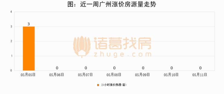根据诸葛找房数据显示,广州24小时涨价房源量为0套,较05月10日持平。