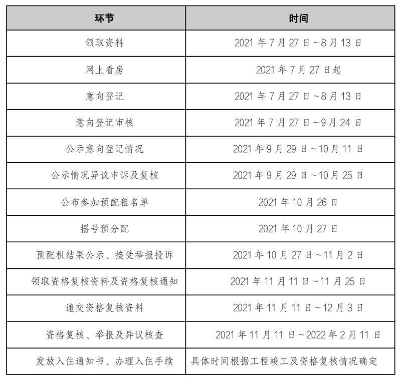 本轮公租房分配时间安排: