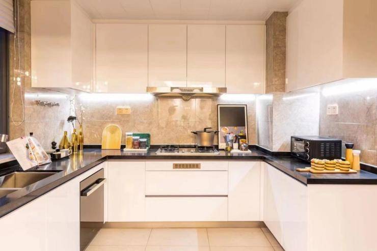 主卧套房大浴缸,步入式衣帽间都是空间的亮点设计。U型厨房操作台,时尚生活细节感拉满。