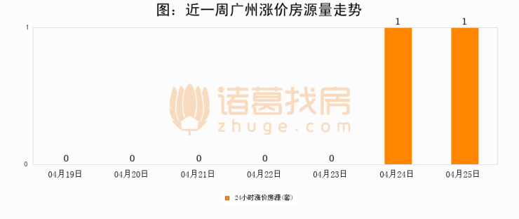 根据诸葛找房数据显示,广州24小时涨价房源量为1套,较04月24日持平。