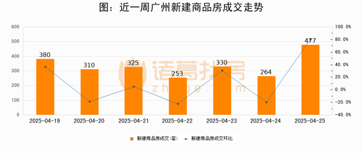 【广州成交日报】04月25日新房成交477套;涨价房源1套