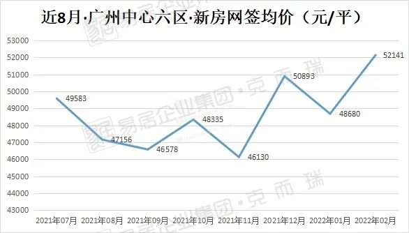 此外,开年中心区再续佳绩,尽管网签数量受春节假期影响有所下降,但在多宗高价盘扎堆网签带动下,2月中心六区均价抬升至5.2万/平,为近8个月较高值。