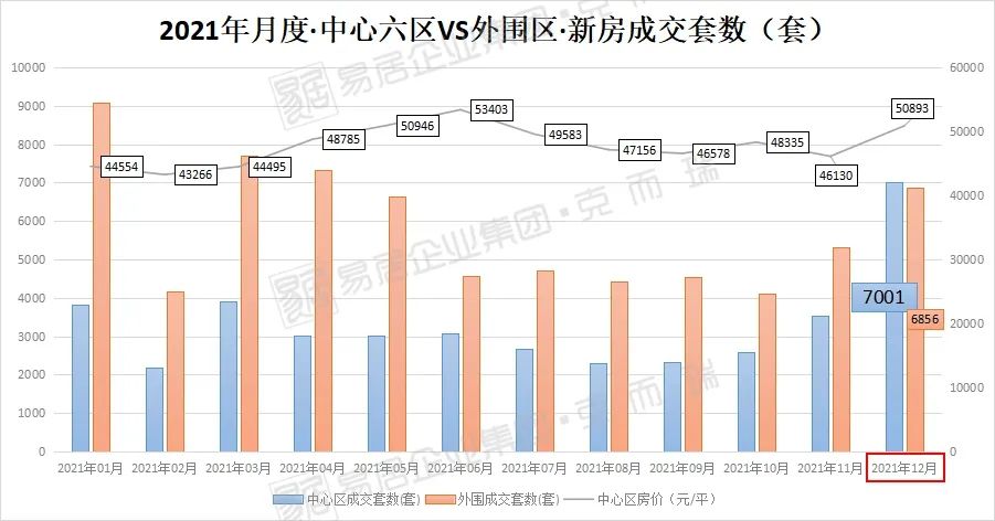 也就是说,中心区在年末市场下行背景下实现了量价齐升,成交量反超外围区!