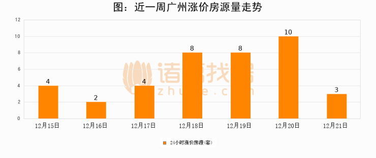 根据诸葛找房数据显示,广州24小时涨价房源量为3套,较12月20日减少7套,环比下降70%。与此同时,涨价房源占比小幅回落,对于购房者来说是一个入市窗口期,购房者可抓住时机入市。
