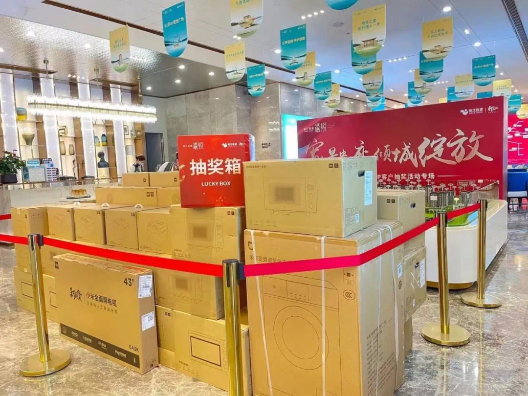 放眼望去,售楼部全是家电等礼品。 看来开发商是有备而来,预想到今天会如此火爆!