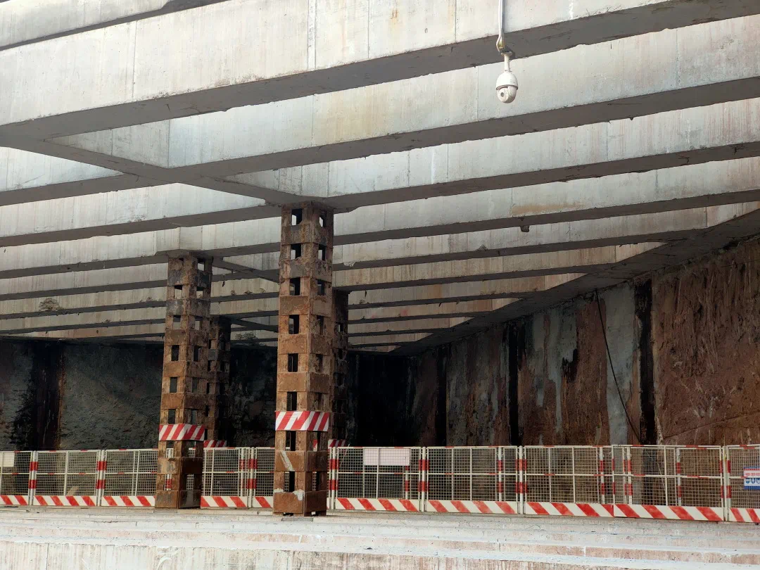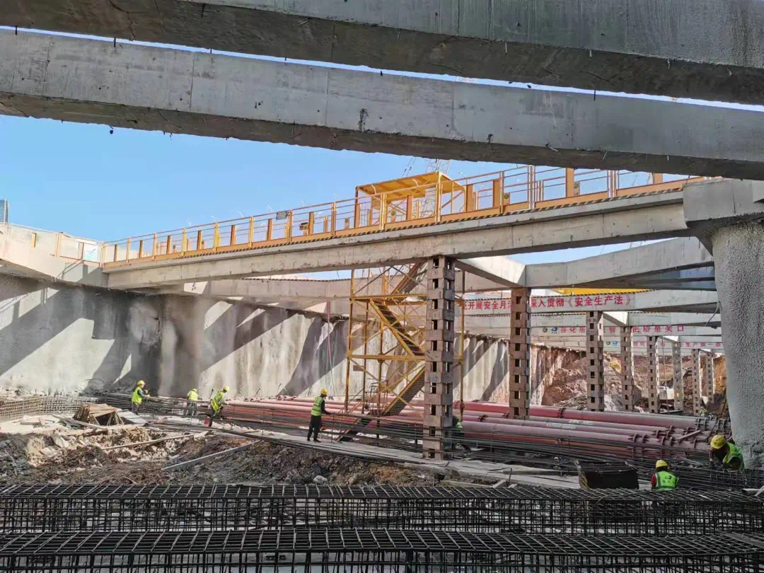 为克服车站基坑开挖所面临的安全施工挑战,广州地铁和施工单位中铁二局的建设者们积极组织参建各方研究优化施工方案,将车站分为四个基坑分别推进施工进度,并利用视频巡查系统、隐患排查治理系统等,全方位多角度对现场进行安全管控。同时,现场施工还持续落实安全教育培训,加强领导带班及日常安全监督管控,连续克服了施工安全风险高、周边环境复杂、渣土外运困难、原材料供应紧张等重重困难,如期实现了封顶目标。