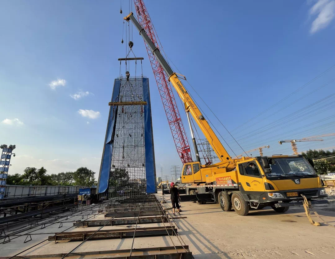△ 朝阳站附属A出入口地连墙钢筋笼吊装