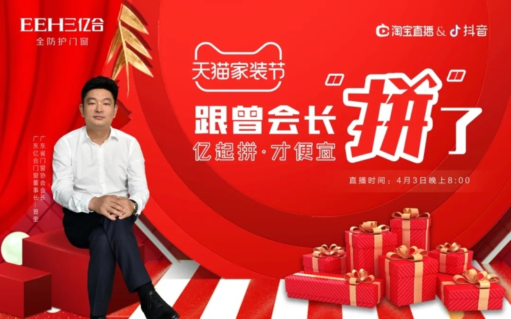 广东省门窗协会会长、亿合门窗董事长曾奎先生“价”临直播间,开启“亿起拼,才便宜”的钜惠放“价”。