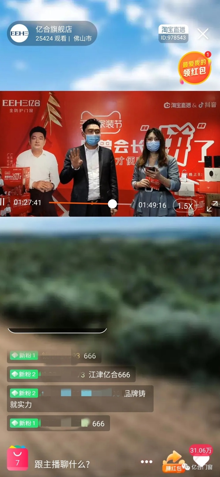 他表示:这次拼团抢购会是疫情期间最后一次直播,并承诺把产品利润尽较大努力回馈给全国广大消费者,让千家万户消费者都能享受到亿合门窗一流的服务。