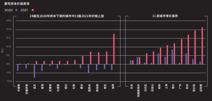 对于豪宅市场的预期,排名前列太平戴维斯认为,随着各国学会与新冠相处,经济复苏,预计豪宅市场将继续增长。尽管具体城市的积极展望各有不同,其预计2022年豪宅平均价格增长将达到4.3%。