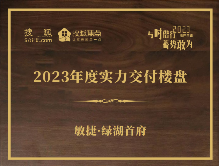 其中,敏捷·绿湖首府荣获2023年度实力交付楼盘奖。