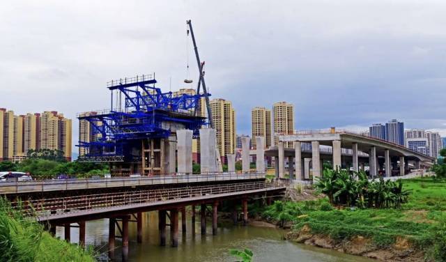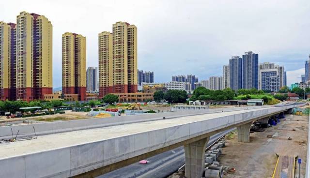 非涉铁段于2021年11月正式开工,跨新街河大桥的建设现场一派繁忙的景象,施工人员正紧锣密鼓地进行挂篮安装以及人行道的电力管沟施工。“目前,大桥部分已完成桥身主体及桥下辅道沥青摊铺施工,计划本年底吊装钢箱梁,完成桥体合龙。”项目相关负责人介绍。