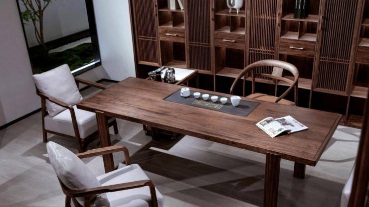 在家具挑选上,中式茶室家具的造型简约大方,注重实用性。桌椅通常采用直线条和简单的曲线,没有过多的雕刻和装饰,但在细节处理上却十分精致;材料上以实木为主,如北美胡桃木不仅具有自然的美感,且质地坚硬、耐用,使用寿命长;颜色上主要以红、黄、棕等暖色系为主,色调丰富,能够营造出温馨舒适的氛围,让人感受到宁静与舒适;在制作工艺上非常精细,家具表面经过了多次打磨、刻画等工序,让家具表面光滑与平整。