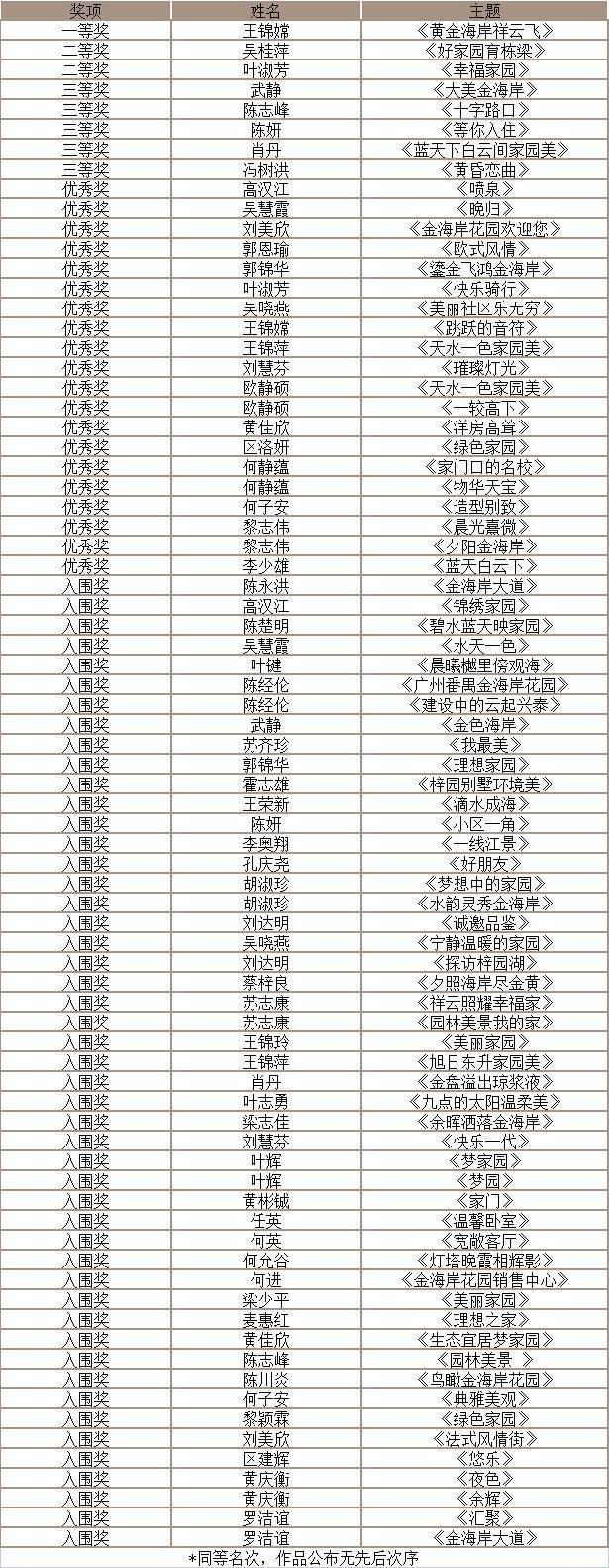 公布即日起,获奖作品在金海岸花园的销售中心盛大展出!届时期待大家莅临观赏~
