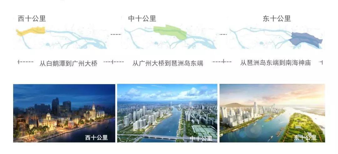 ●“西十公里”“近代广州”段:从白鹅潭到广州大桥,形成中西合璧、展现城市变迁的花园式滨水长廊;