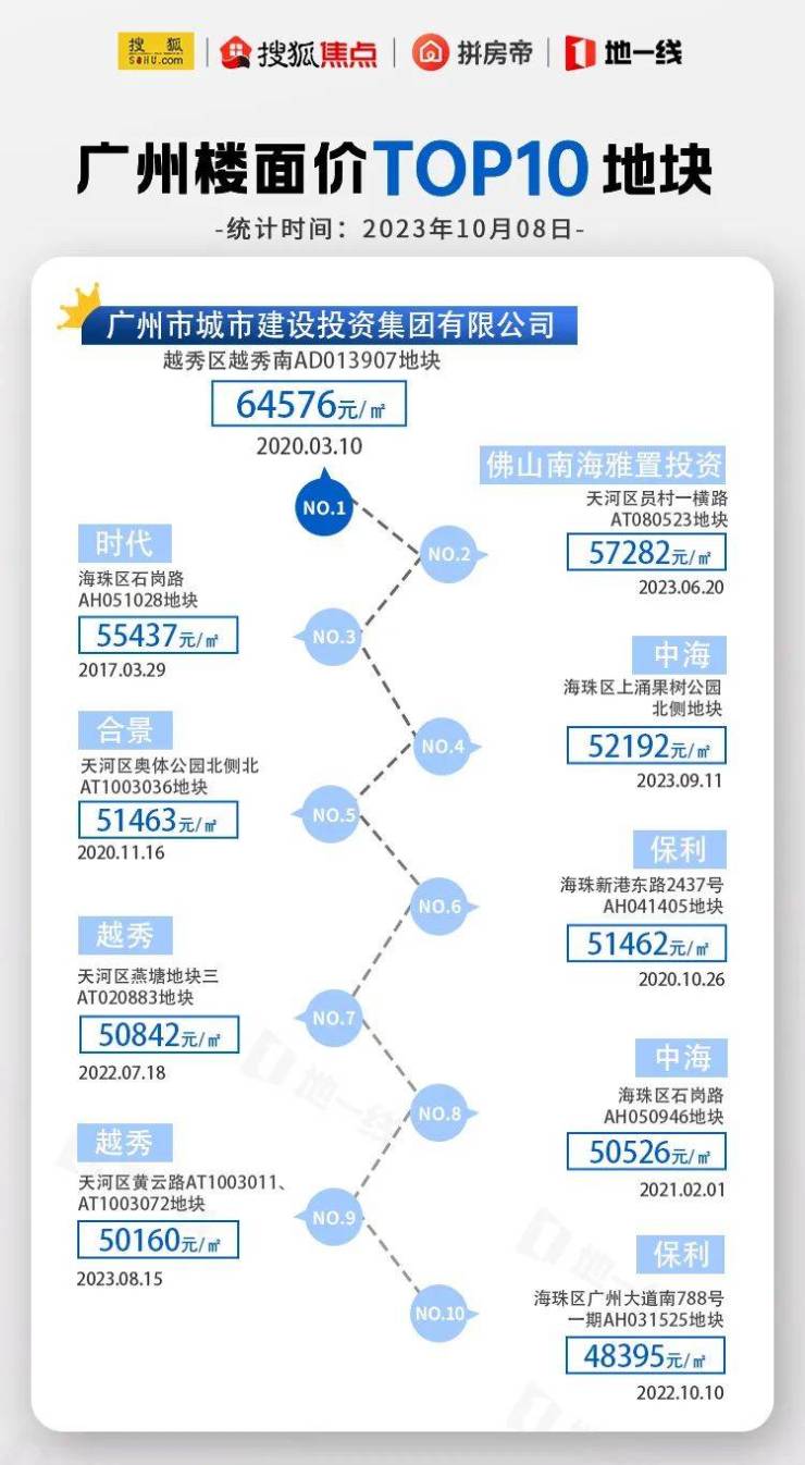 看下面这张图,目前广州楼面价TOP10地块中,海珠区占了5宗。