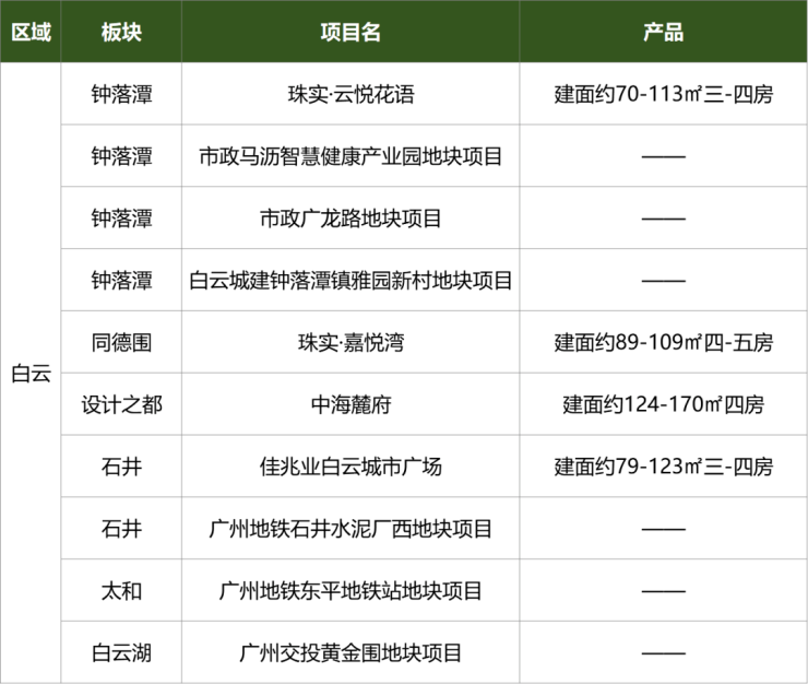 除以上项目外,白云还有5宗已成交的待入市的宅地,分布在钟落潭、白云湖、石井等地,虽具体规划暂未确定,但明年也仍有入市的机会。