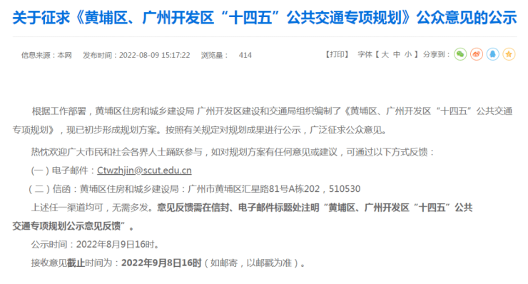 黄埔就未来三年的交通规划,邀请公众提意见。