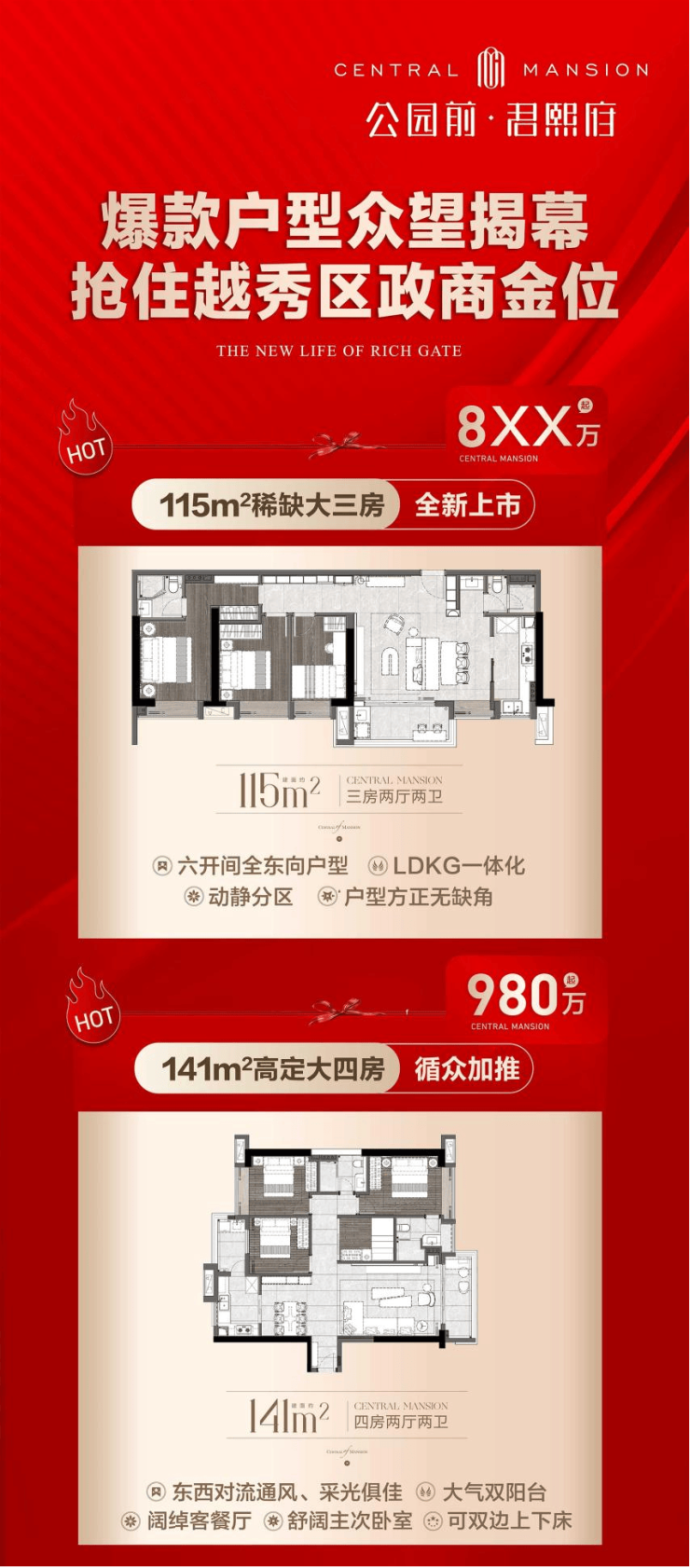 目前,君熙府115㎡稀缺大三房全新上市、141㎡高定大四房循众加推,踮起脚尖即可入主越秀区政商金位臻稀新房,错过只能向往。打算今年上车越秀区的小伙伴,千万别犹豫,一定要去君熙府走一走,看一看。