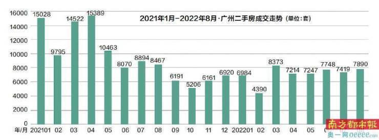 据市场机构克而瑞数据,2022年1月至7月,广州二手房月均成交不超7100套,仅3月单月突破8000大关。而在2021年,这一数据为月均9592套,2020年为月均10113套。