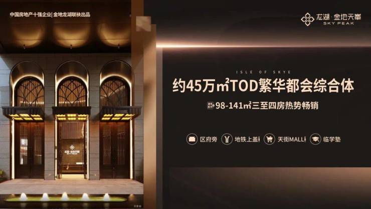 龙湖·金地天峯由全国知名房企,龙湖集团与金地集团联袂打造。