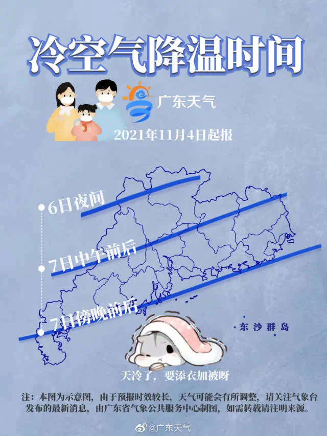 并且由于近期广东逐渐升温,而这次冷空气较强,全省降温幅度将比较大。预计7日—10日各地平均气温下降8~10℃。