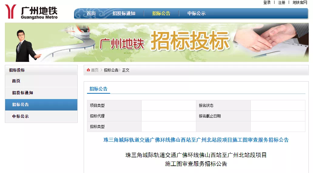 公告指出,该项目已由广东省发展和改革委员会《关于珠三角城际轨道交通广佛环线佛山西站至广州北站段项目建议书的批复》(粤发改交通函【2016】6306号文)批准同意新建广佛环线佛山西站(不含)至广州北站(不含)段项目,项目资本金占总投资的50%,由广东省铁路建设投资集团有限公司和广州、佛山市共同出资。目前项目已具备招标条件。